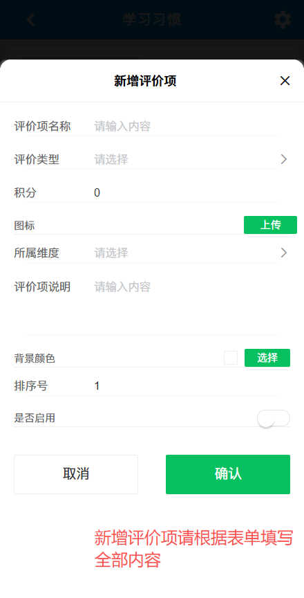 自定义学生评价项